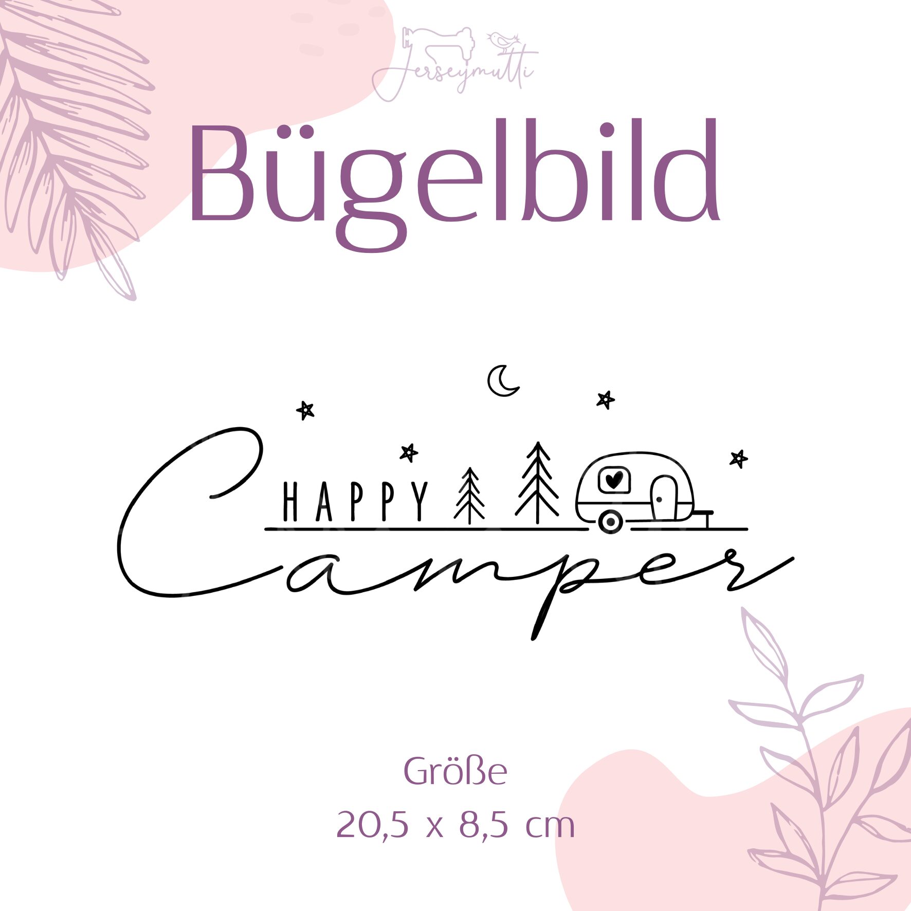 Bügelbild “Happy Camper schwarz” (ca. 20,5 x 8,5 cm)