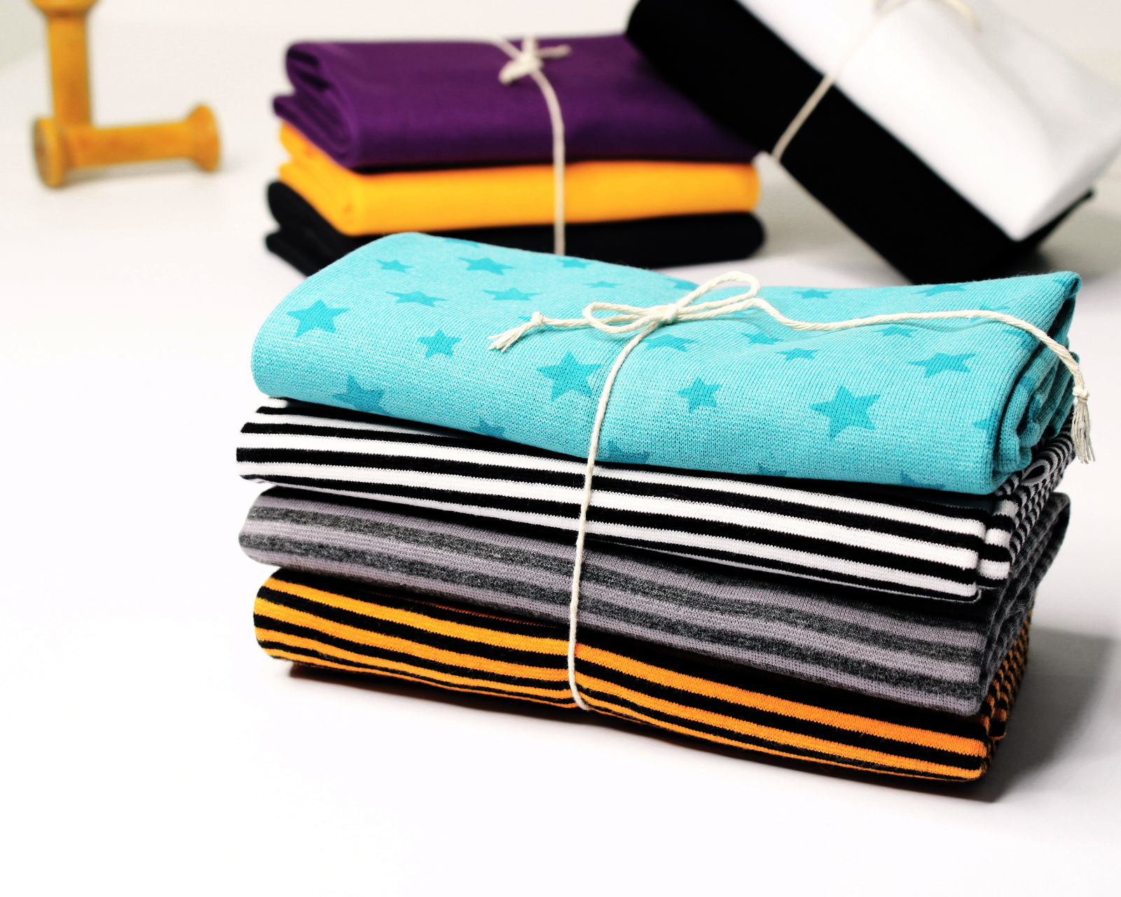 Dieses Paket besteht aus 4 x 0,5 Meter Bündchenware mit Muster in ÖkoTex zertifizierter Qualität.
