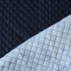 Dieser Stoff besteht aus zwei in Rauten zusammgesteppten Stofflagen – ein leicht dehnbarer Webstoff in Jeansoptik und eine Vlieslage. Linke Seite Polyestervlies, rechte Seite Jeans.