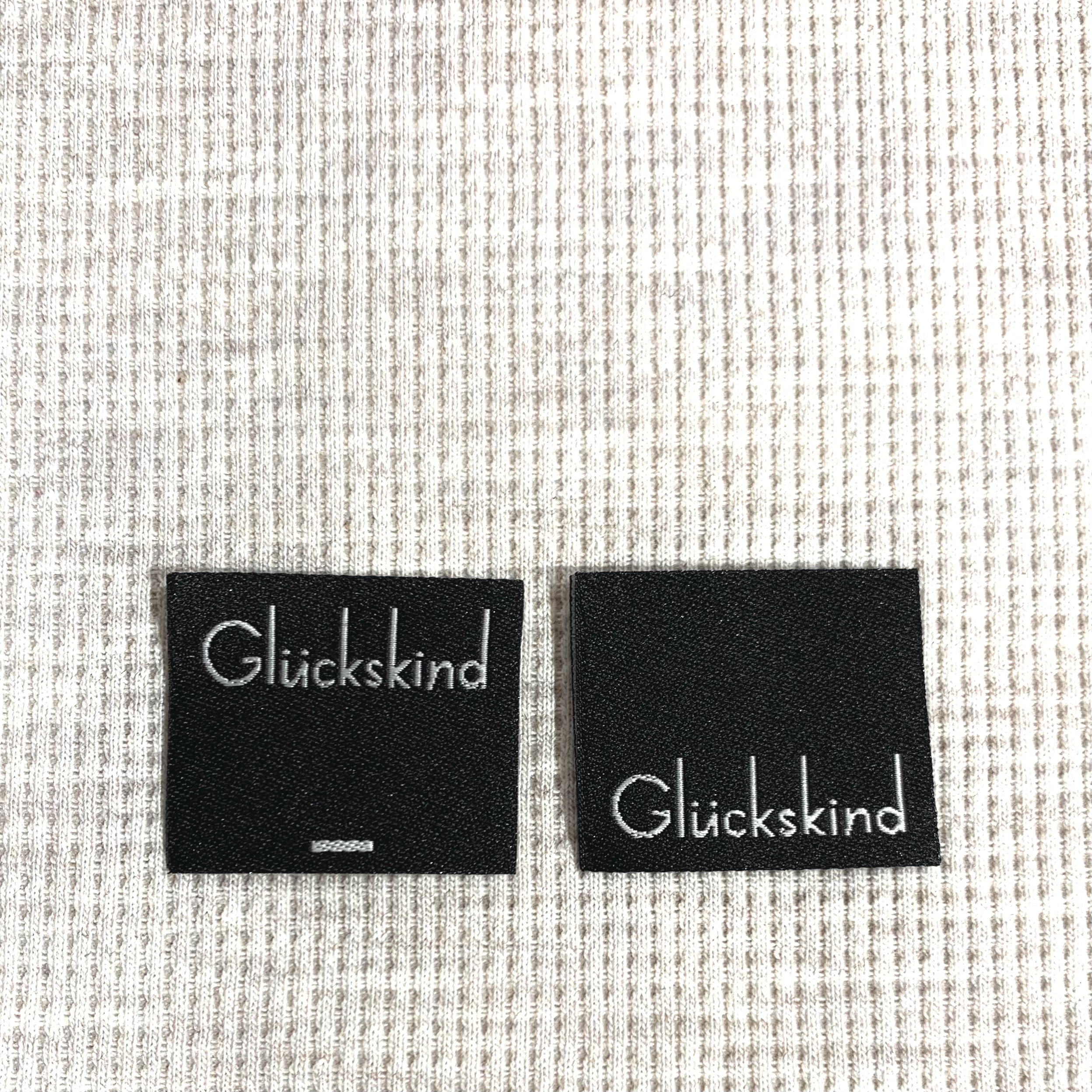 Die Etiketten können zwischen zwei Stofflagen eingenäht oder um den Saum geschlagen werden und und sind gefalten ca. 28×30 mm groß.
